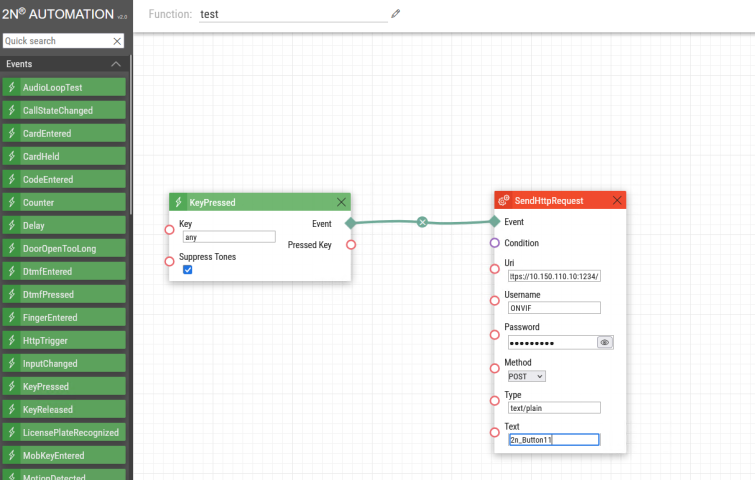 how can i make an automation where when someone press a key it automatically send something to milestone that trigger a rule to start recording mic for 2 minutes