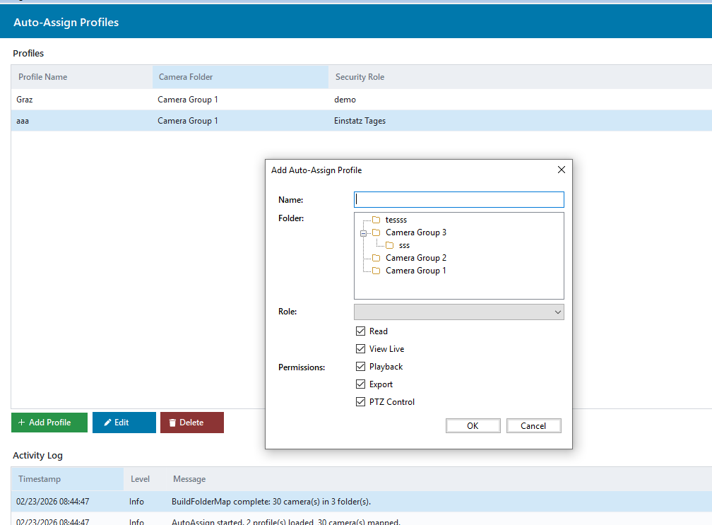 To me, this sounds essentially like what you described with folders, so in a way, this kind of permission “clash” already exists. I created two roles and added the same user to both: in one role I allowed access to a camera, and in the other role I denied it. In Smart Client I can still see the camera. So the system decides that I’m allowed to see it, but I don’t know which rule/order is applied here.