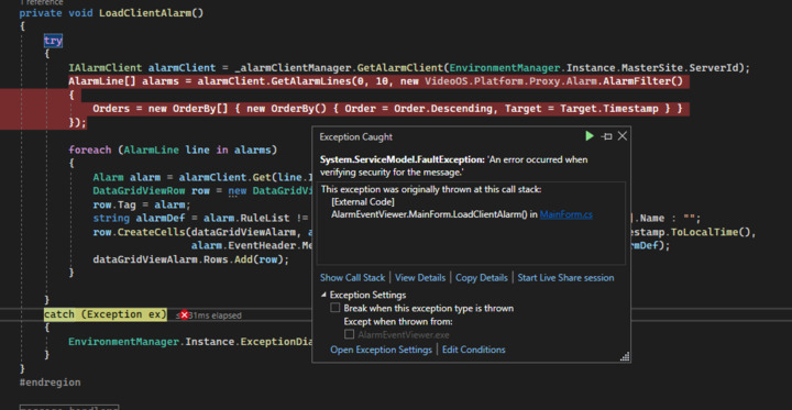 I am getting this error while running latest AlarmEventViewer sample pls help urgent