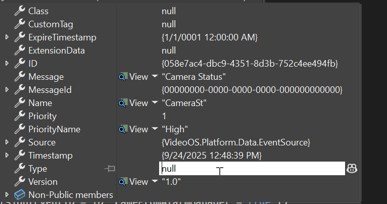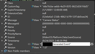 In 2025R2 a analytics event sent from Event Server with CustomTag and Type fields filled in, arrives in Alarm Manager with them null (viewed in AlarmPreviewWpfUserControl with Alarm alarm = alarmOrBaseEvent as Alarm;) @Eric Bourque