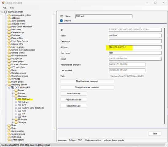 In this other post below, I see that I should be able to retrieve the camera’s IP address as well in a similar manner; however, I don’t see the ‘Address’ property in the HardwareDriverSettingsFolder. I’m using Python so cannot use the SDK code verbatim, and the properties I see are: Product ID, MacAddress, FirmwareVersion, SerialNumber, DetectedModelName, etc.
