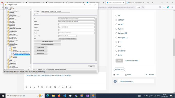 The “Password Last Changed” field is new in 2022R3 and doesn’t exist in 2022R2 or older versions. There is no way to get this information if the XProtect server is an older version.