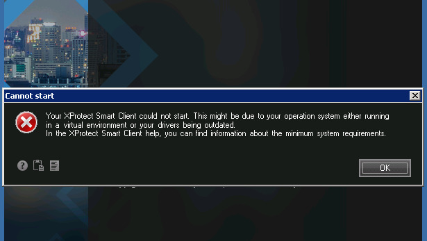 We are trying to run the Milestone Smart Client application. It Is not starting, shows “can not start” error.