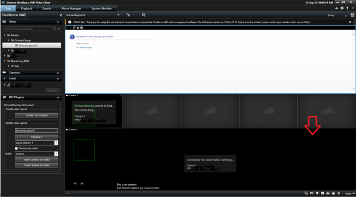 I tested with the plugin samples “Active Elements Overlay” and “Smart Client Insert Camera”