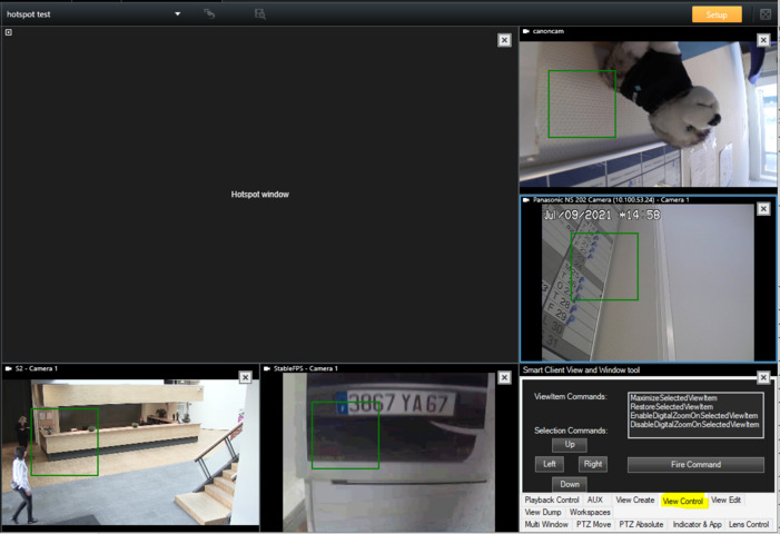Start Smart Client and create a new 1+5 layout view and assign Hotspot window to the first (biggest) view. Assign Smart Client View and Window Tool to the one of the small windows and rest are for cameras (see below).