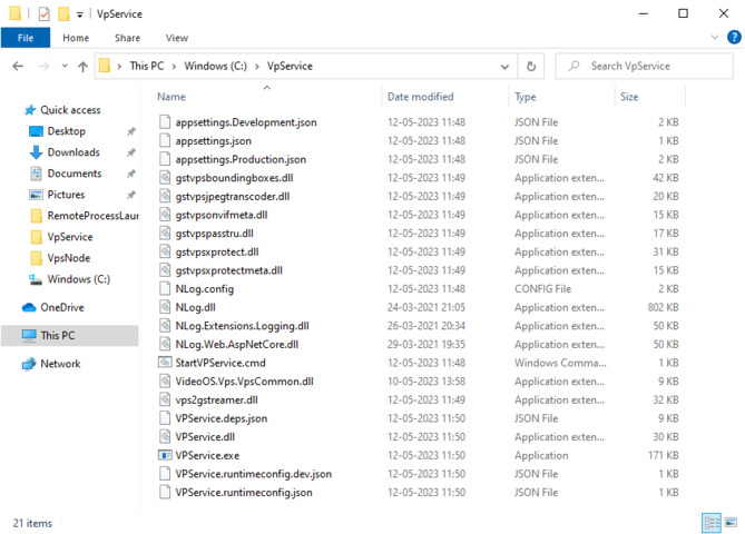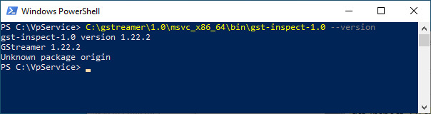 The environment variables are shown in the previous comments above.Try uninstall GStreamer and install it again (gstreamer-1.0-msvc-x86_64-1.22.2.msi), so long the command: gst-inspect-1.0 --version does not work, when you are standing in the Vpservice directory then some configuration is wrong. I have no other ideas