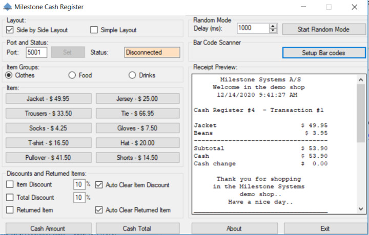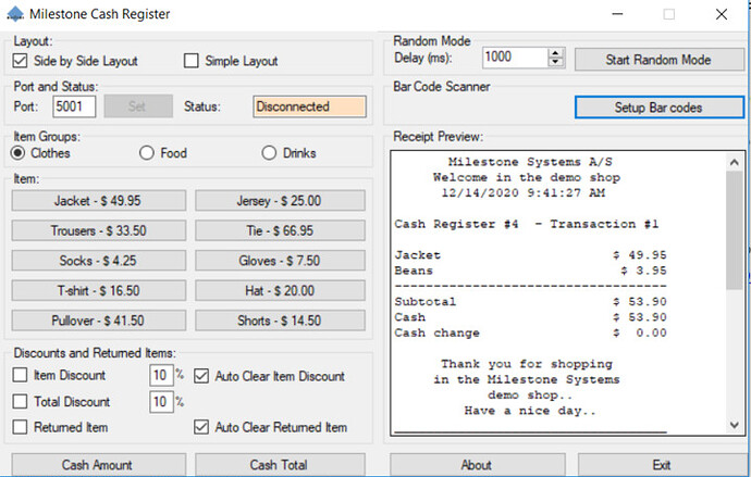 Ah I see. The Transaction documentation doesn’t say that clearly . Even the diagram is kind of misleading. So technically if we use the Cash register simulator as seen in the screen shot, it acts as a server component and the TCP connector in our system connects to it on port 5001 and extracts the data. I was under the impression the data is being pushed into our connector as it listens on 5001.