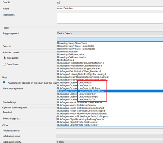 This means that if the user is modifying the names of the detection zones in the camera regularly, the list of event shown in the Alarm Definitions and rules will keep on growing and growing.