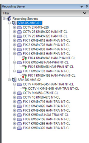 I setup Milestone in two servers as picture below. One Management Server and two Recording Server.
