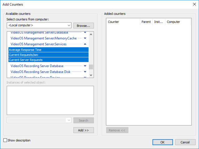 So, there is no other way to get the performance counters (e.g. CPU/RAM utilization) of a recording server except using the Central protocol, right?