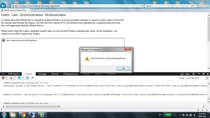 Error Code 20 appears if re-attempt to login within 1 minute. Notice after 1 minute, login most likely successful. Attached is the screenshot