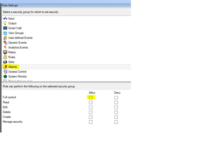 Also I do not understand how checking for access to write alarms was not right, can you tell me what you try to accomplish?