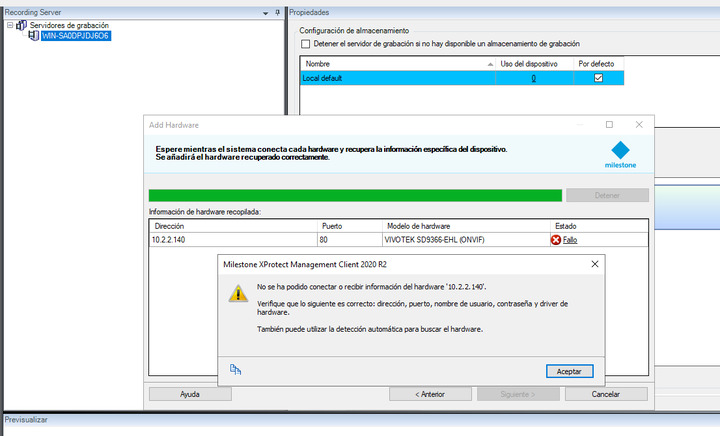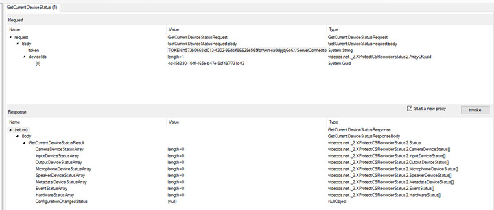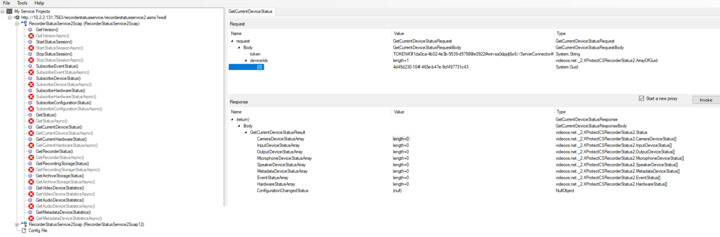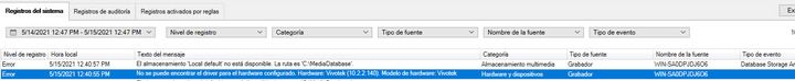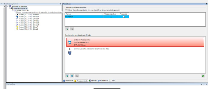Hi Andersen, thanks so much for your response, look at the following image 1 on the yellow icon appears the error message (in spanish) in english should be something like “one or more storages of the recording aren’t available”. Maybe for that when i invoke the getCurrentDeviceStatus function on the web services then it doesn’t return nothing (see image 2). How could I fix this error about the storages?? (the services are running, you can see the image 3). Also in the log, I can see something about the driver for the hardware you can see the image 4 (the driver for the configured hardware cannot be found).