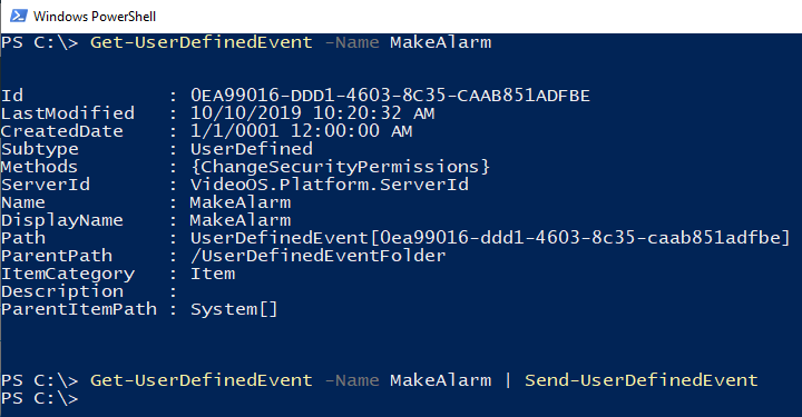 Get-UserDefinedEvent -Name MakeAlarm | Send-UserDefinedEvent