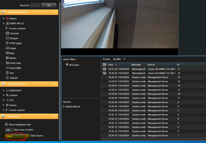 If you drag and drop Alarm preview to another viewitem, then you will see the event preview recording (if there is recording) when you click one of the events on the list.