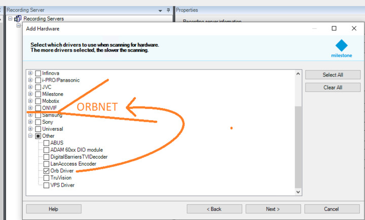 Currently, it seems that the only way to add new drivers to Milestone is under the “Other” section. I have seen the driver show up under “ORBNET” once but it was in an older version and I have not been able to get that to work again.