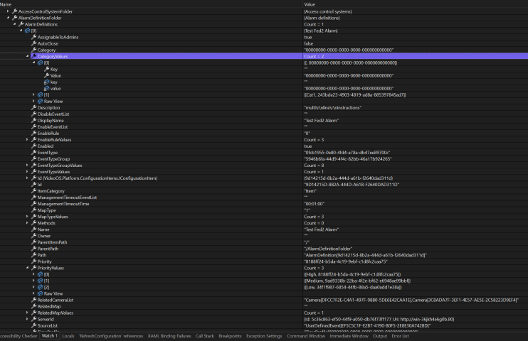 For example, I am connecting the SDK to FED1 (top of the federation) and the priorities are empty, but when I check the alarm definitions in FED2 (federated to FED1), the priorities AND categories are available, even thought there is no selected Category for the Alarm Definition: