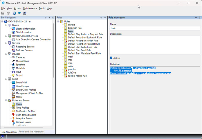 The rule can also be configured by your integration so that no manual setup is required, you can achieve this by using Configuration API or Rest API.Let your integration send an analytics event and a bookmark. The bookmark Creator sample will show you how to create the bookmarks programmatically.