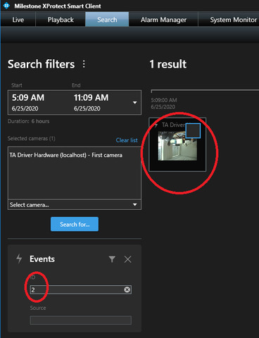 On the other hand, when I select an Analytics Event which is associated with a camera, I can use the search function using the event ID.