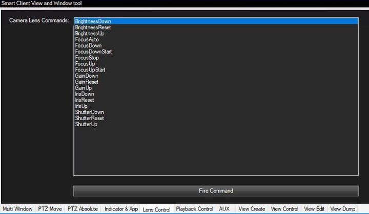 I have spent some times to look through the Smart Client View and Windows Tool plugin sample. I tried firing all the Camera Lens Commands in the list of the following image: