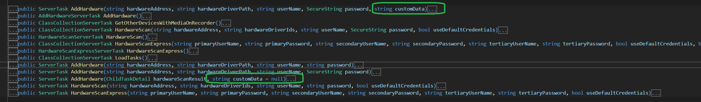 Is there currently a way to use the SDK to add a new Hardware device and somehow send a parameter that we can pickup in the driver’s configuration manager in case we want to specify hardware options without having to connect to an external device.Currently, the only variables we get are the hostname, port, username and password.