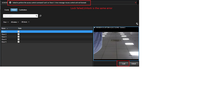 From the Management Application screenshot it does not seem like the Door1 is enabled, but it is hard to see whether it is possible to enable it or not. Could you please check and let us know whether you are allowed to enable it (in the Doors and Associated Cameras tab)?