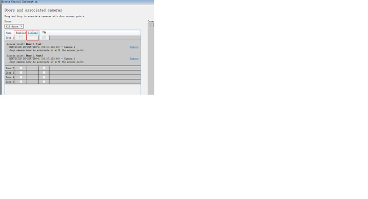 I tried to enable Door1,but failed. no response whether I click or double click the Enabled box. For your reminding,I found the License is null(see the screenshot blow,I have circled the License edit box).Does my License support for Access Control?