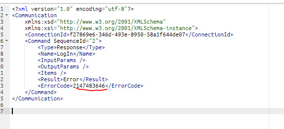 2)I checked this error number, you don’t have this error number in your document and as I can see it looks like some unhandled error becausethe error code gets the default value I guess.