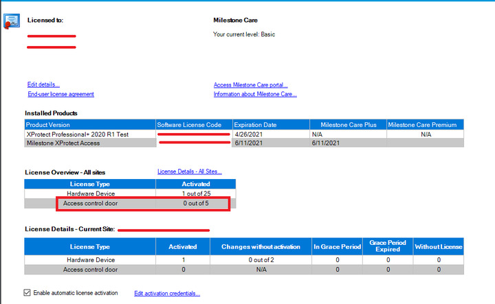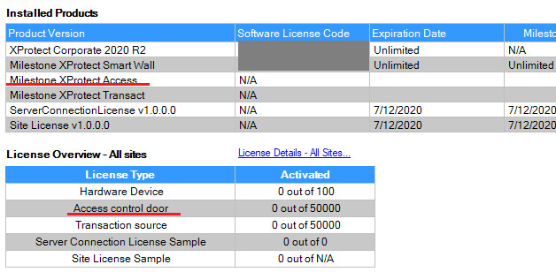 My license page is now showing under Installed Products, XProtect Access as being licensed.