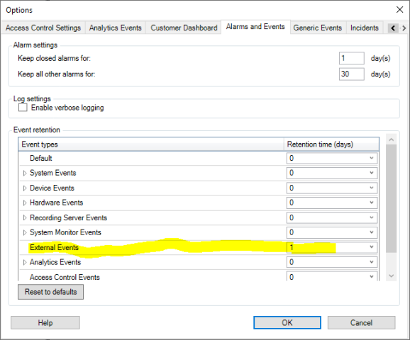 A word of caution, if you set up too long retention and the VMS saves too many events you can cause the SQL Server database to overfill.