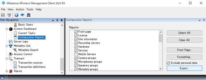 However, I found that it looked better if I logged into Management Client and exported the “Configuration reports .pdf”.