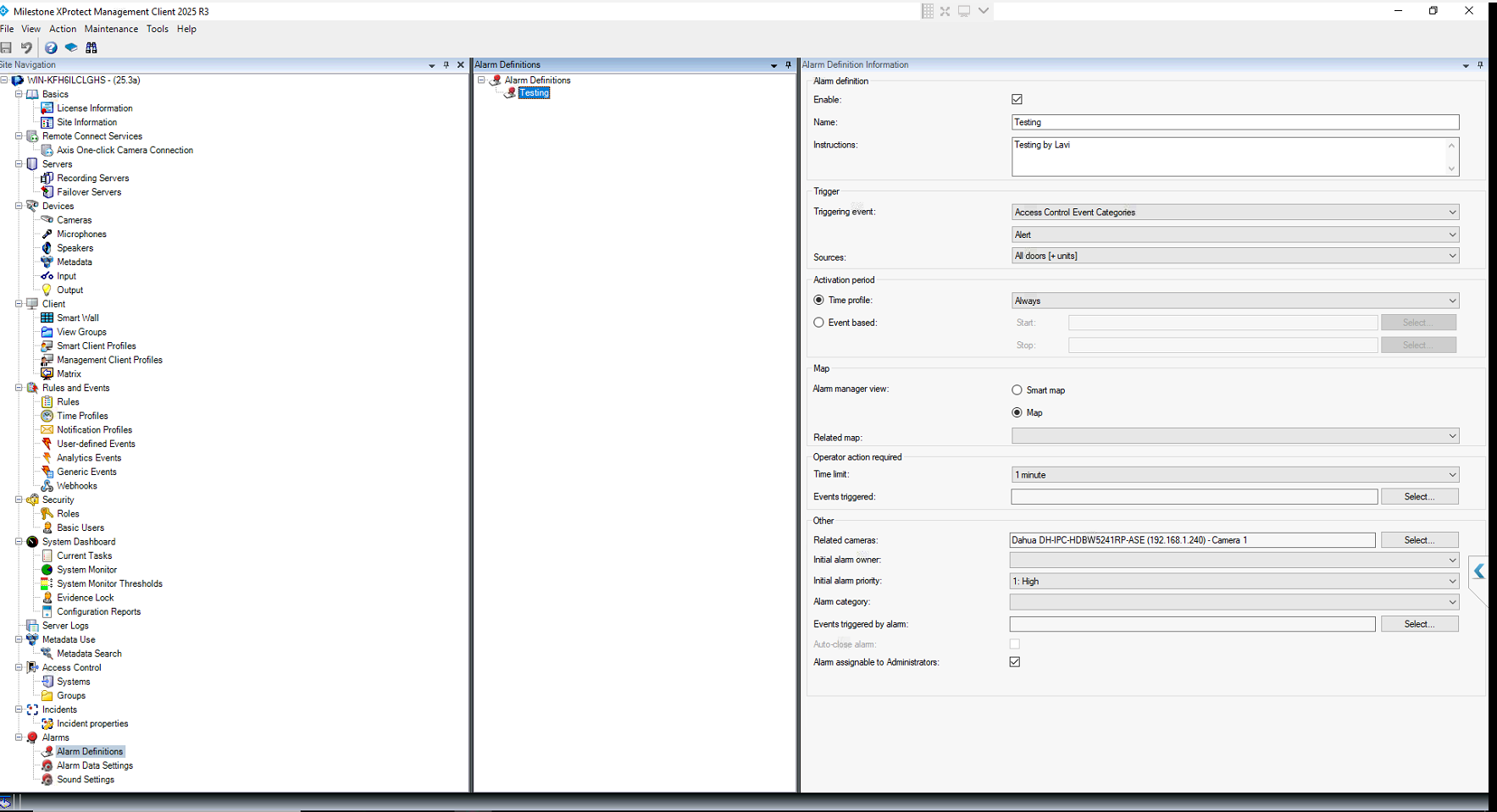 - Milestone XProtect Management Client version 2025 R3(v25.3a)