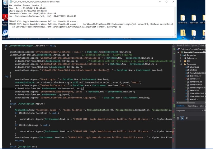 The exception is on VideoOS.Platform.SDK.Environment.Login instruction.