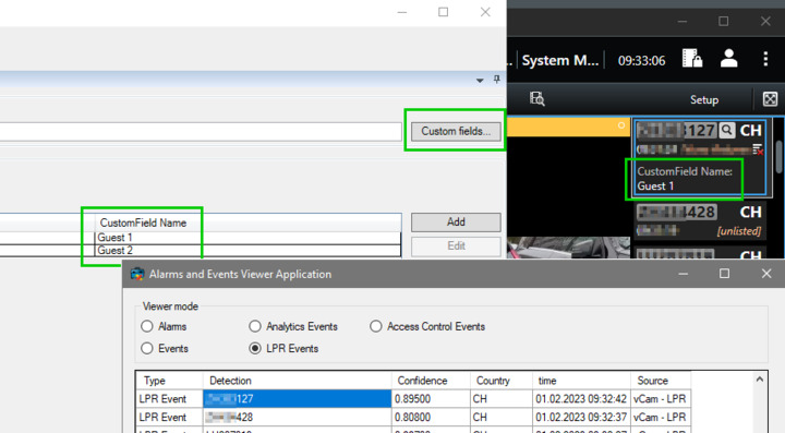 It is not appeared automatically, you will need to utilize and display this field in your plugin. Please check the sample code, there is a method called loadClientLPR () line 166 around in MainForm.cs. in the method, you will see each event’s detail in foreach loop and that has the custom field. That is what you need to use and show in your plugin.