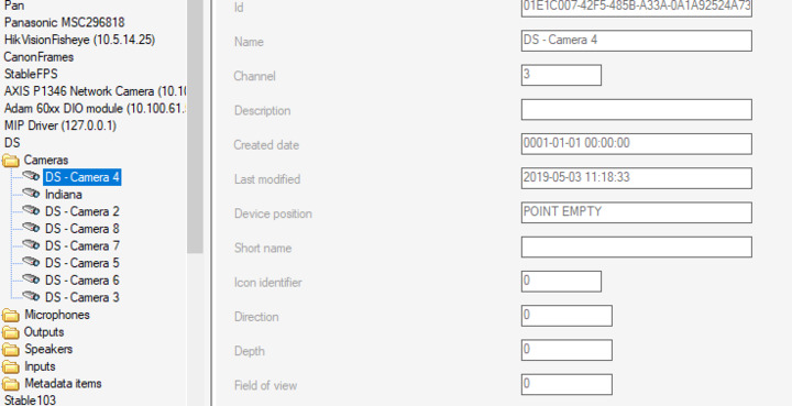 My device has 5 view areas that are added as 5 cameras. For some reason view area 4 of the device is always added as first Camera item in the Cameras folder of the Hardware item.