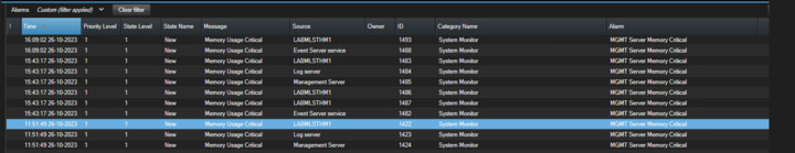 But alarm shows Memory usage critical in message field