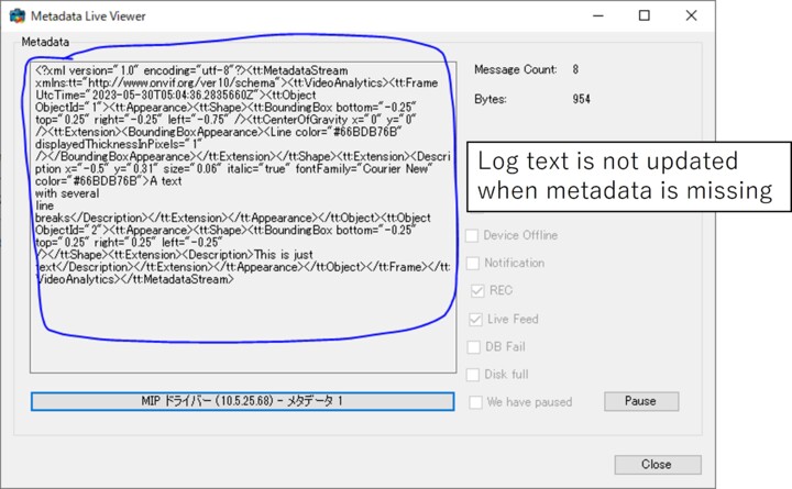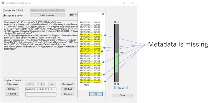 We tried MetadataPlaybackViewer and confirmed that metadata are missing in the playback data.