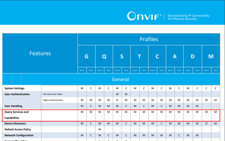 Getting capabilities of the device and services is mandatory for all ONVIF Profiles.