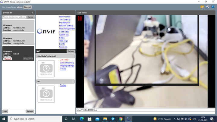 Our Onvif server runs on port 8080 and RTSP live stream on 8900.