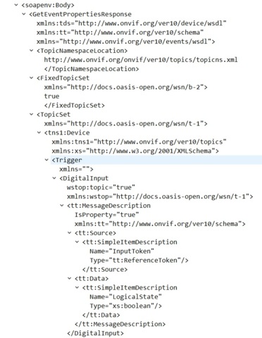 I attached our response for the GetEventProperties call.