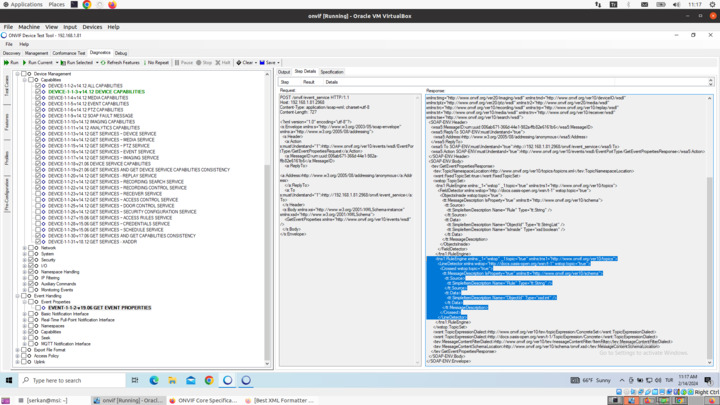 We are developing a device which implements the ONVIF protocol. Events, such as tamper or line cross, occured in the device can be pulled via Pull Point Subscription. When tested with ODT (ONVIF Device Test Tool) and ODM (ONVIF Device Manager) everything works as expected. I added our device as an ONVIF conformant device and Milestone pulls the event messages. When I sniff the network with Wireshark the message seems to be correct but Milestone gives an error.