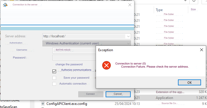I am reaching out to you because I am currently experiencing an issue with connecting to the server using your system. Whenever I attempt to establish a connection using the Configuration API, I consistently receive an error message stating “Connection Failed. Please verify the server address.” I have carefully checked the server address as well as all the connection information used in my application, but I have been unable to resolve this issue on my own.