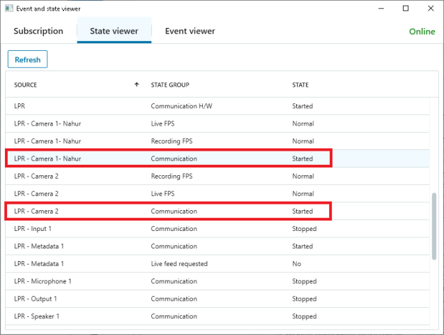 It provides you with possibility not only to subscribe for events (communication error for example) but also to get current state of the cameras. Thus, you could connect periodically to the system (for ex on 10 minutes as you mentioned) and get the actual state of the cameras (of interests).