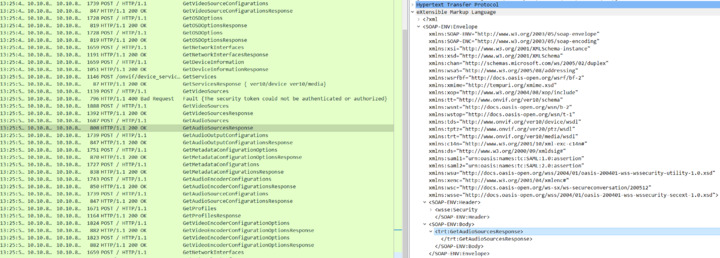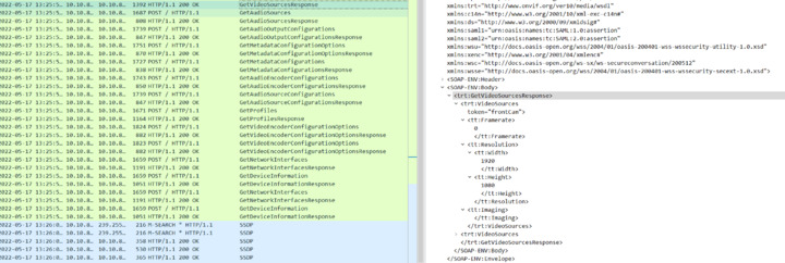 I can’t see any http communication in Wireshark. If you are using https, please switch to http when capturing the trace. Also start Wireshark before trying to add server and stop it 2-3 min after that. Don’t use any filters except the IP of the server. Regarding the url used to get video stream, this is the normal behaviour according to ONVIF specification. We request the URI for video from the device and then use it to start the video streaming. So the URI returned from the device should be the correct one.