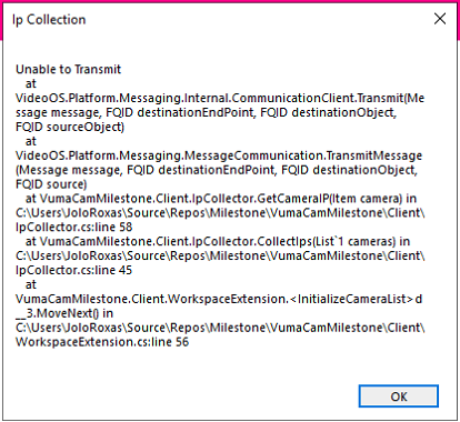 I’ve been using the MessageCommunicationManager to request the Ip address of each camera then listing them down to list as I will be using it to map it to an web app. Before the MC has been handling it quite well, up until just the other day wherein the plugin was throwing ‘Unable to transmit’ errors.