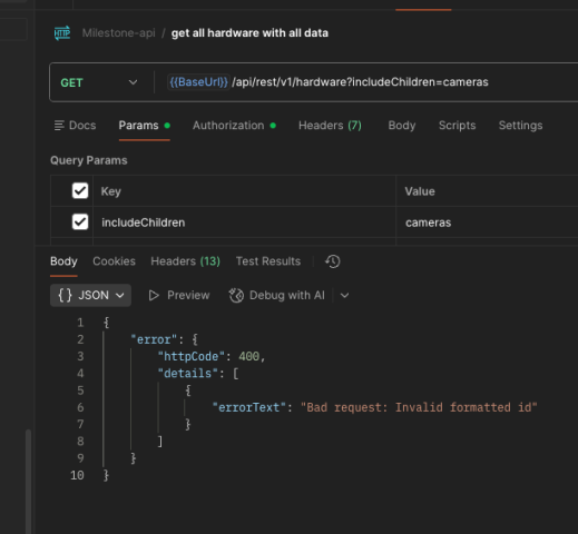 im using this api/rest/v1/hardware?includeChildren=cameras,microphones,speakers,hardwareDriverSettings,motionDetections&page=0&size=10