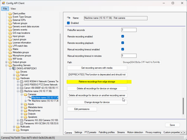 You can ask the recording server to retrieve edge recordings using Configuration API.
