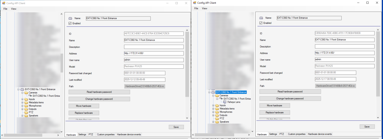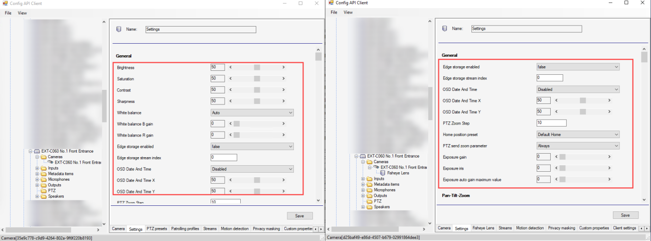 We have added the same camera to two recording servers, and when we check the camera settings, both show different lists of settings, even though the driver and firmware versions are the same. Images of the same are attached.