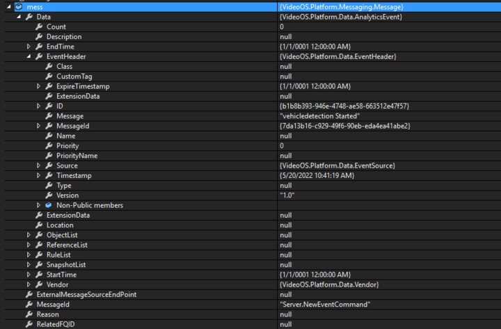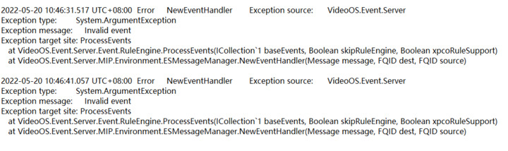 Sending analysis events through the event service plug-in has been failing, and the MIP log shows ArgumentException. The content of the Message message is as shown in the figure. I want to know which parameter is wrong and will cause the ArgumentException. In addition, there is no such problem when the same code sends the same Message in the Standalone Service before.