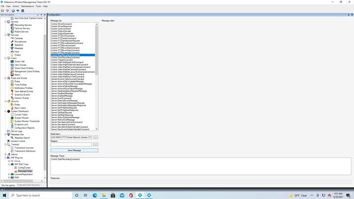 With MessageTester, when sending a message for a selected camera item in Admin Client works fine, but the same in SC crashes.